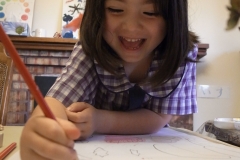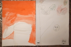 5月22日(月) 本日より「植物を描く」を開始しました。植物の葉や茎を丁寧に観察し描き、それらを切抜き、紙面上で実際の植物のように組合せて再現します。子供たちは葉を一枚一枚大切に描いていくことができました。また、着彩の段階で「僕はクレヨン!」「私は絵具!」と自主的に画材を選択できたことも良かったです。