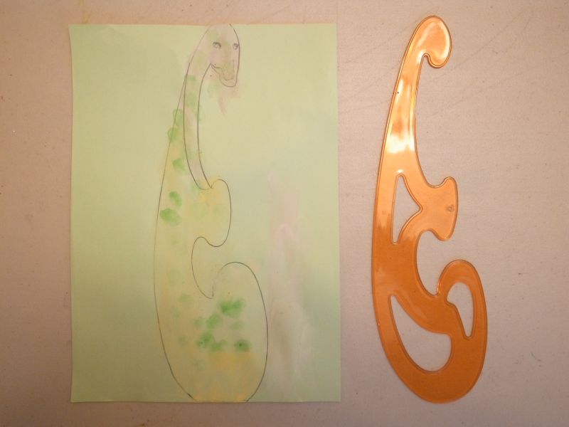 Thu 1/6/2017 Feeling time flies that now is June! At today’s lesson, there were the greatest works emerged I’ve ever seen. When you place in front of each of the works, there are a lot of enjoyment you will have whichever you do the close inspection it or not. As a new task ‘Drawing by straight and curve rulers’, dinosaurs appeared on paper using shapes of curve rulers. Cool:-)