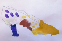 上の作品は4歳児の作品。水彩の濃淡もあり、しっかりした作品です。