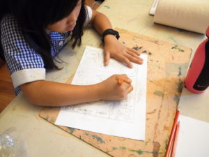 一週目の今日は、下絵制作からアクリルを引っ掻くところまで。