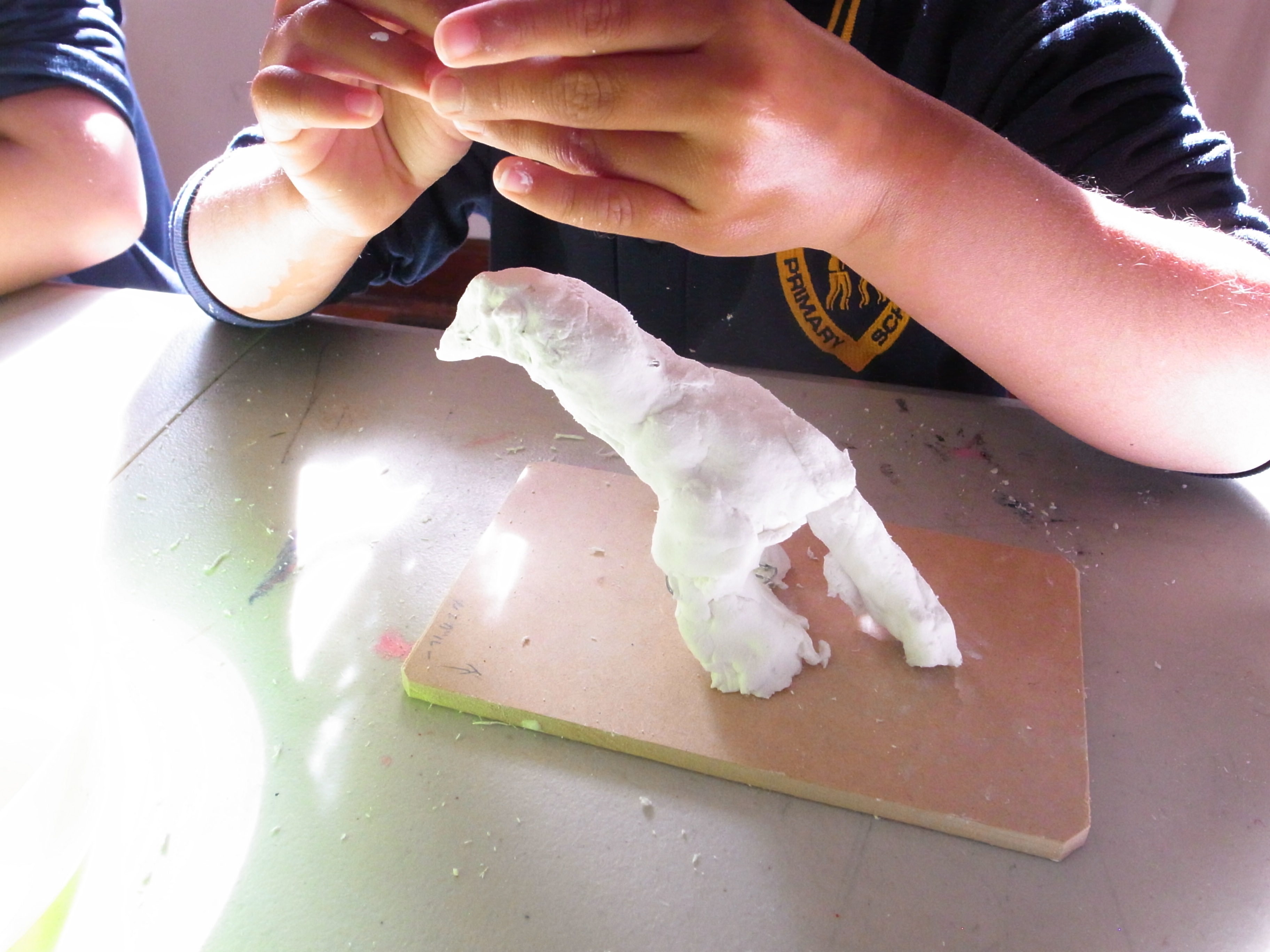 一度に大量の紙粘土で肉付けしてしまうと、動物のシルエットが崩れてしまうので注意ですね。